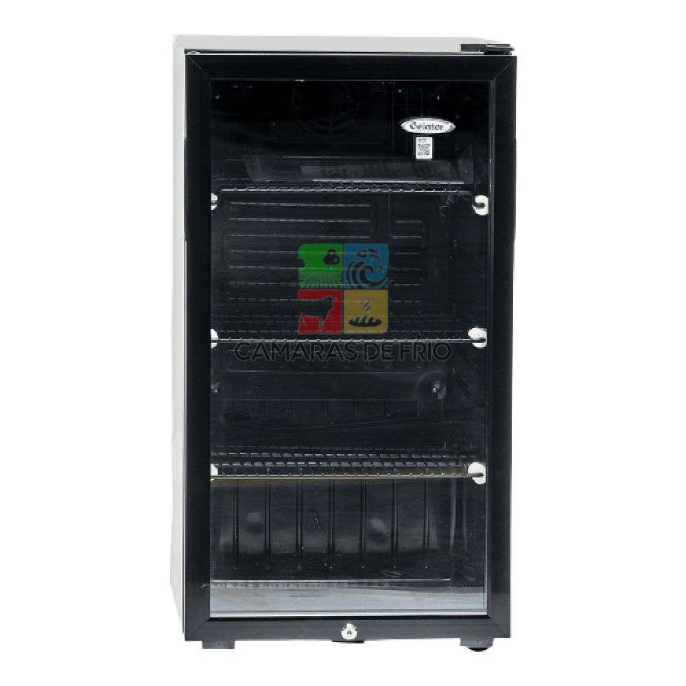 Vitrina Vertical sobre mesón exhibidora de bebidas y frescos, ideal para demostraciones, presentaciones, y destacar