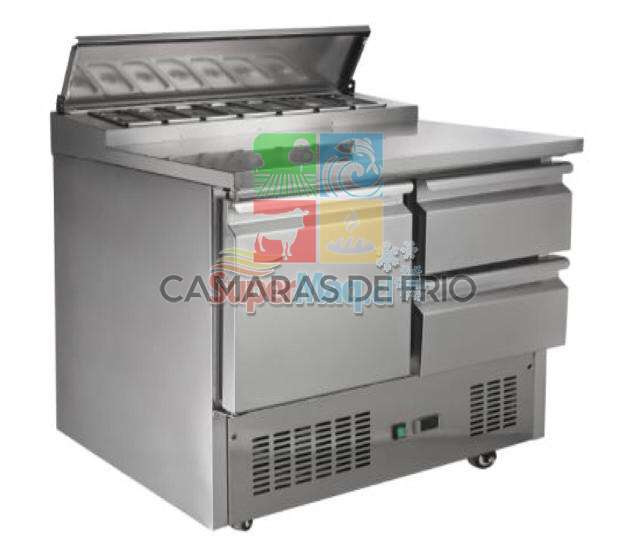 • Mesón refrigerado para preparación de comidas, saladette,